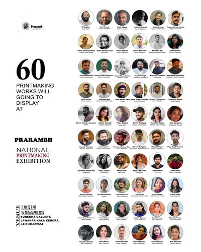 This "Prarambh" exhibition is being held at the Surekha Gallery, Jawahar Kala Kendra, from April 1st to 3rd, 2024, Organized by- Vijay Singh Beniwal and Curated by - Jayshree Singh Deo showcasing the works of 46 invited Indian printmaker and 14 participants from workshops.
