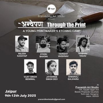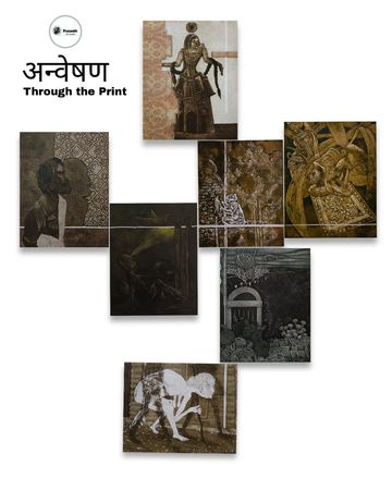 अन्वेषण – Through the Print is a portfolio of etching works created during a young printmakers’ camp at Prarambh Art Studio. Diverse visual voices are united by a continuous line, symbolizing connection, shared curiosity, and collective exploration across cultures, regions, and artistic journeys through printmaking.